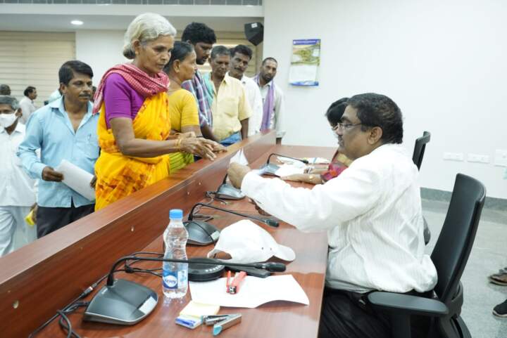 తీసుకుందామని బెదిరిస్తున్నారని, అట్టి భూములను సర్వే చేపించి హక్కు పత్రాలు మంజూరు చేయాలని చేసిన దరఖాస్తునుపరిశీలించిన ఆయన తగు చర్యలు నిమ్హం కలెక్టరేట్ ధరణి పర్యవేక్షకులకు ఎండార్స్ చేశారు.చుంచుపల్లి మండలం, పెనగడప గ్రామానికి చెందిన మన్నె ఆదినారాయణ ఇంటిస్థలం ఉండి ఇళ్లు లేని పేదప్రజలకు రాష్ట్ర ప్రభుత్వం ఇంటి నిర్మాణానికి నిధులు మంజూరు చేస్తామని ప్రకటించారని, తాను ఇల్లు నిర్మించుకోవడానికి రూ.3 లక్షల రూపాయలు మంజూరు చేయాలని చేసిన దరఖాస్తును పరిశీలించిన ఆయన తగు చర్యలు కొరకు డిఆర్జేకు