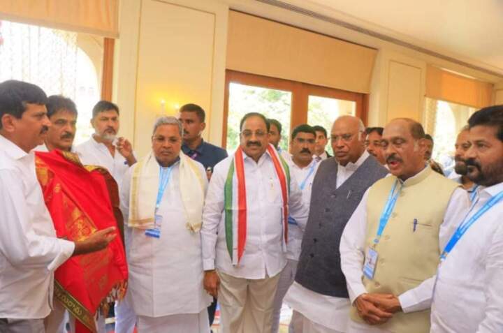 ఖమ్మం జిల్లా రాజకీయాల్లో దిగ్గజం, మాజీ మంత్రి తుమ్మల నాగేశ్వరరావు కాంగ్రెస్ తీర్థం పుచ్చుకున్నారు. కాంగ్రెస్ కండువా కప్పి పార్టీ లోకి ఏఐసీసీ అధ్యక్షులు మల్లికార్జున్ ఖర్గే ఆహ్వానించారు. ఈ సందర్భంగా కర్నాటక సీఎం సిద్దరామయ్య టీపీసీసీ అధ్యక్షులు రేవంత్ రెడ్డి, ఇన్ ఛార్జ్ ఠాక్రే, జిల్లా నేతలు భట్టి విక్రమార్క, పొంగులేటి శ్రీనివాసరెడ్డి పాల్గొన్నారు.