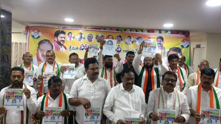 కాంగ్రెస్ పార్టీ 6 గ్యారెంటీలు పథకాల కార్డులను ఆవిష్కరించిన ఎమ్మెల్యే పొదెం వీరయ్య,ఇంఛార్జ్ ఆవుల రాజీ రెడ్డి