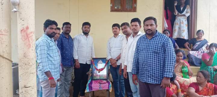 బోడ నారాయణమ్మ చిత్ర పటానికి పూలమాల వేసి నివాళ్లు అర్పించిన తెలంగాణ మాల మహానాడు నాయకులు.