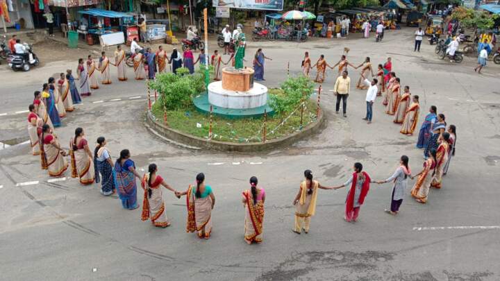 సిఐటియుసి ఆధ్వర్యంలో అంగన్వాడీలు మానవహారం…