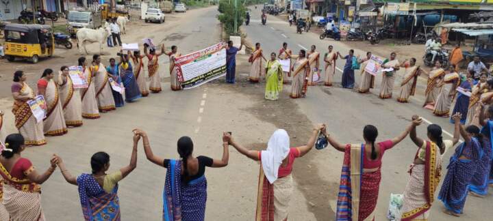 అంగన్వాడీ సమస్యలు పరిష్కరించాలంటూ మానవహారం